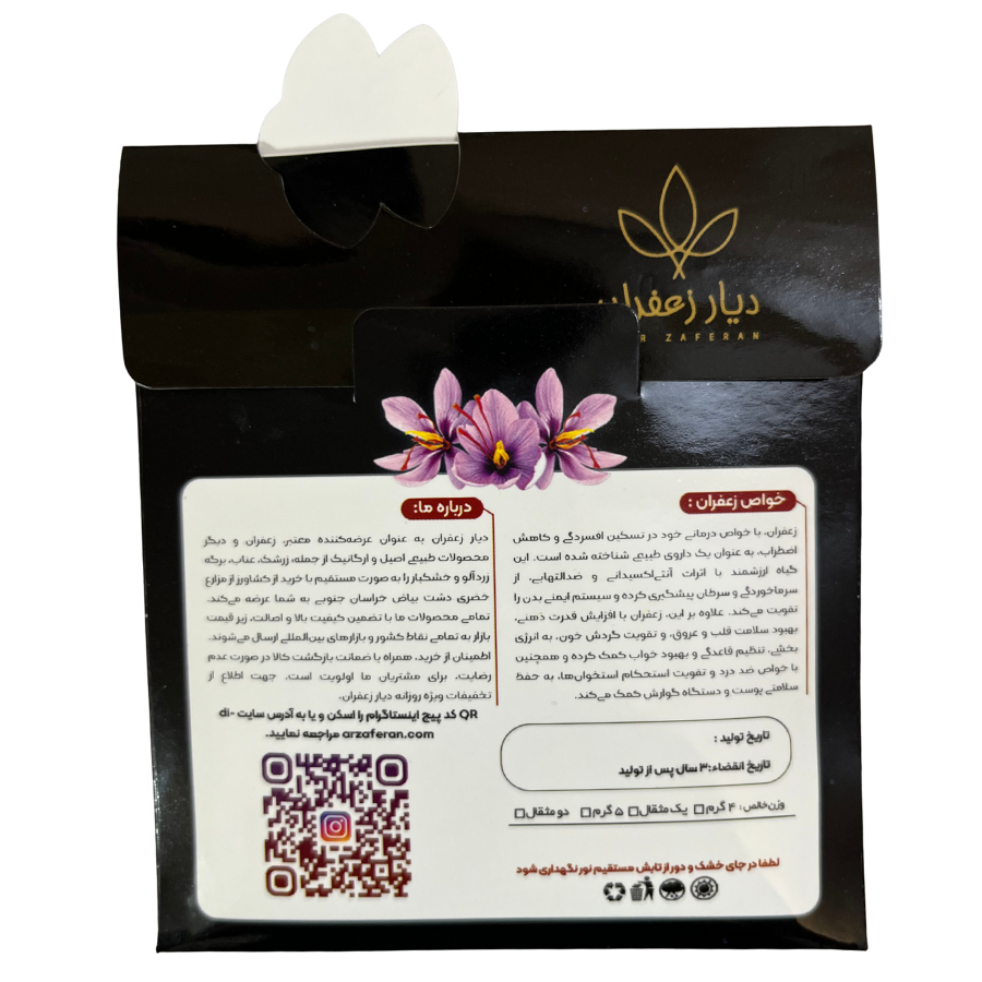 پلمپ شده با هولوگرام دیار زعفران و روکش پلاستیک